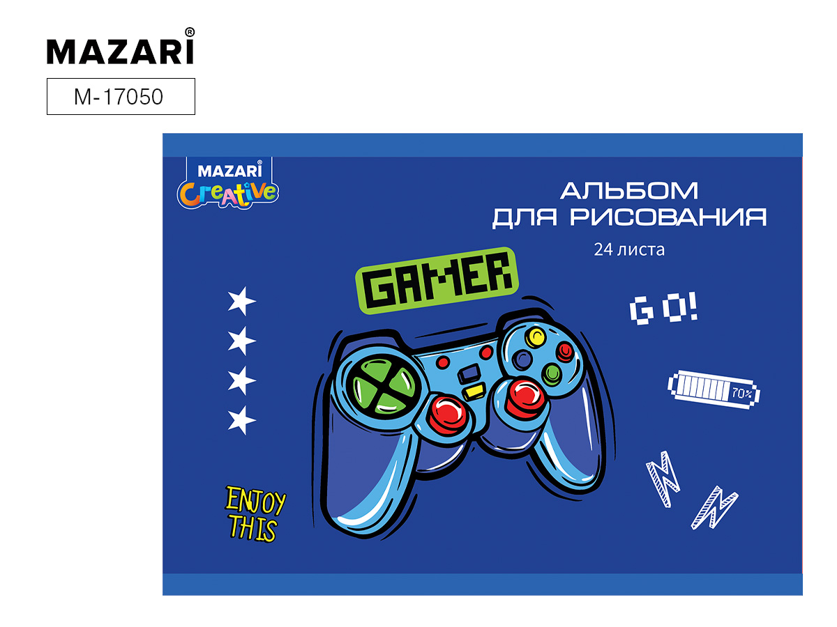 Альбом для рисования А4 24л Mazari Gamer (100гр) скрепка M-17050 мел.картон
