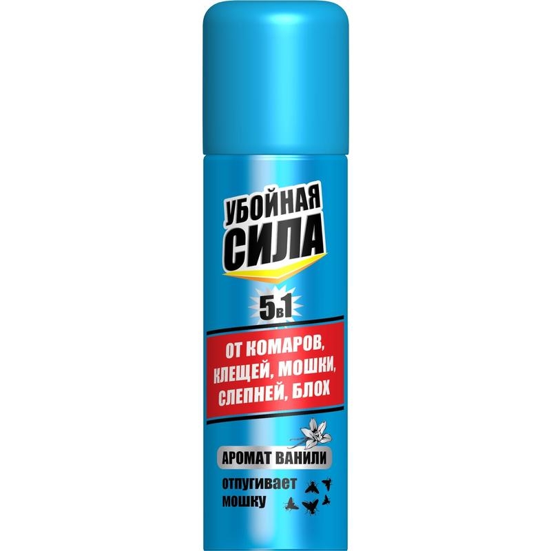 Аэрозоль от комаров, клещей, мошки, слепней, блох. Убойная сила. Максимум150мл 5в1