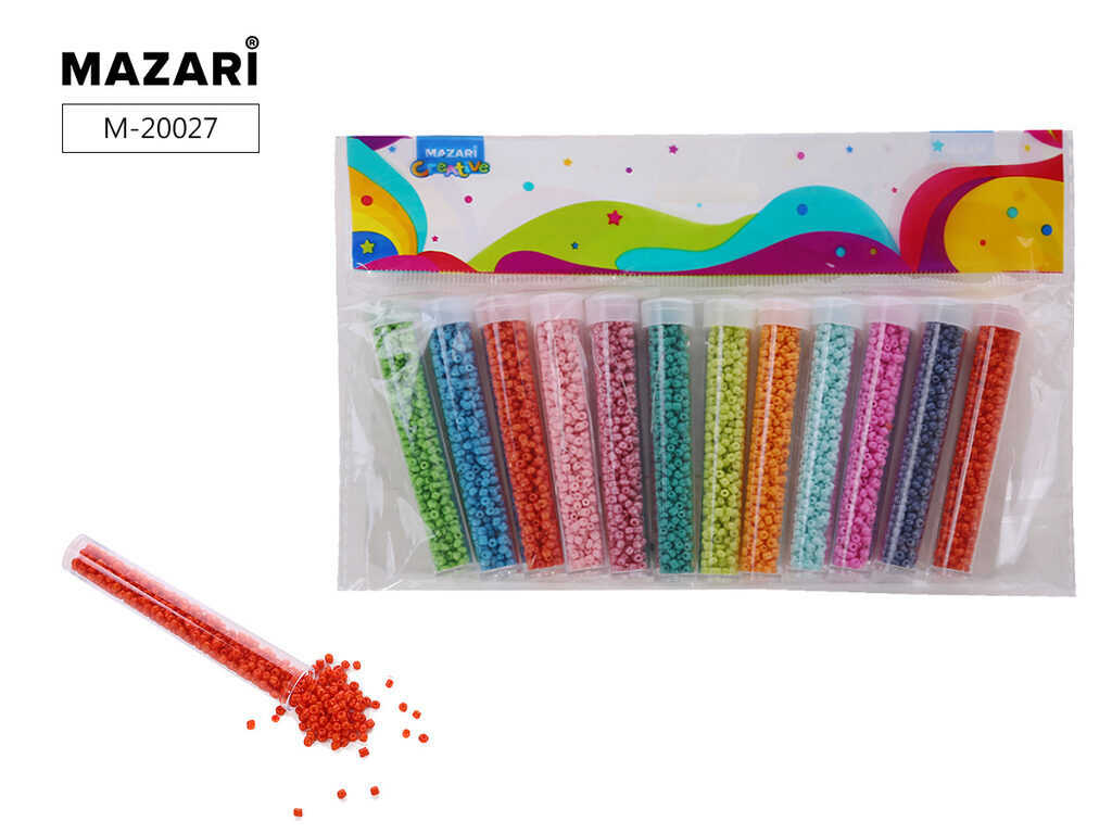 Бисер круглый 2мм в тубе с крышкой (Набор 12 цветов по 7гр) яркие Mazari M-20027