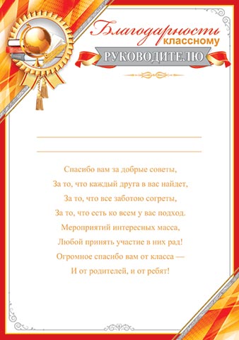 Благодарность классному руководителю для принтера А4 Медаль 9-19-558