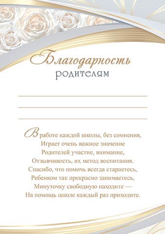 Благодарность родителям для принтера А4 Розы, серо-золотая рамка 9-19-576