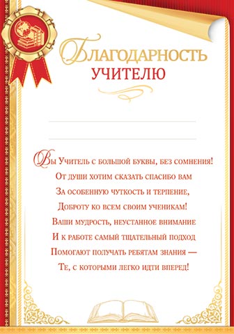Благодарность классному руководителю для принтера А4 Медаль 9-19-558