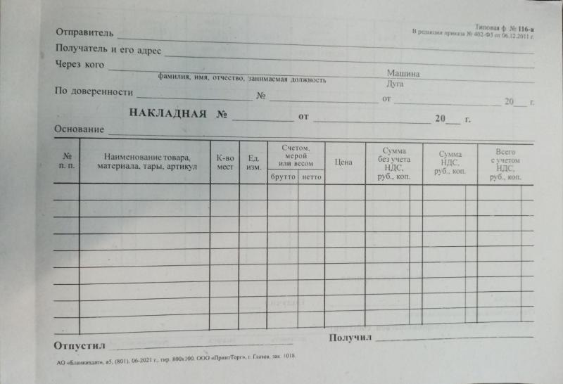 Бланк Накладная А5 100л с НДС горизонтальная форма №116-а (двусторонняя)