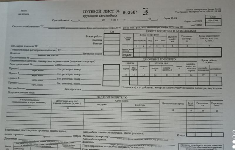 Бланк Путевой лист грузового а/м А4 100л газетка, оборотный форма №4-С с номером
