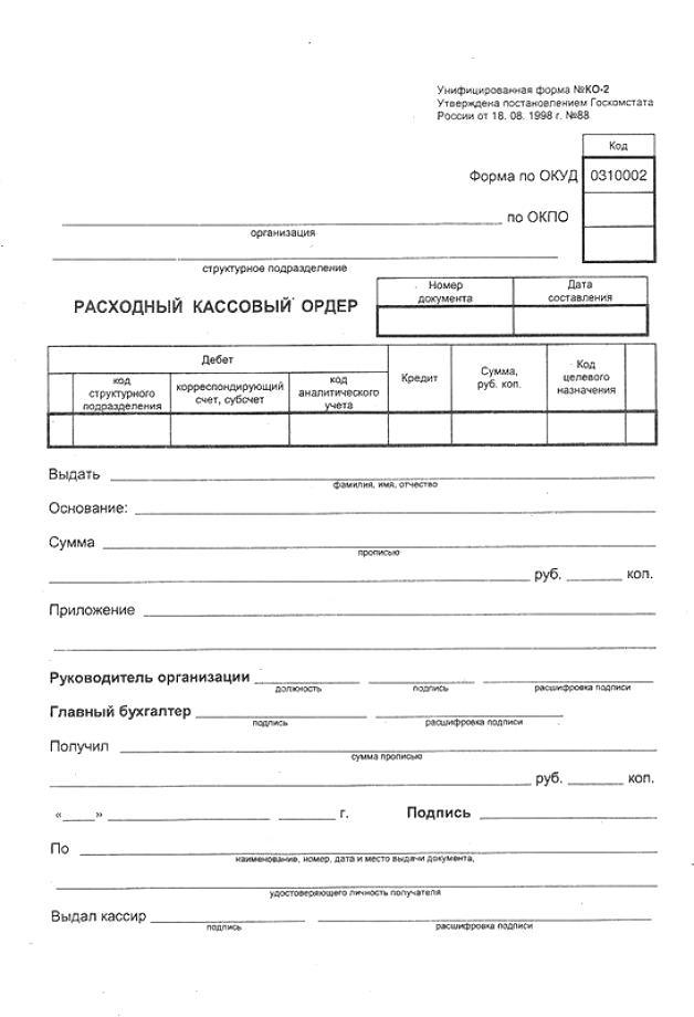 Бланк Расходный кассовый ордер А5 100л газетка форма №КО-2 161207/130005/3619