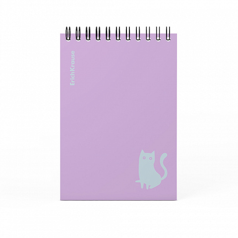Блокнот А6 80л спираль ErichKrause Brave cats фиолетовый, клетка, пластик.обложка 61985