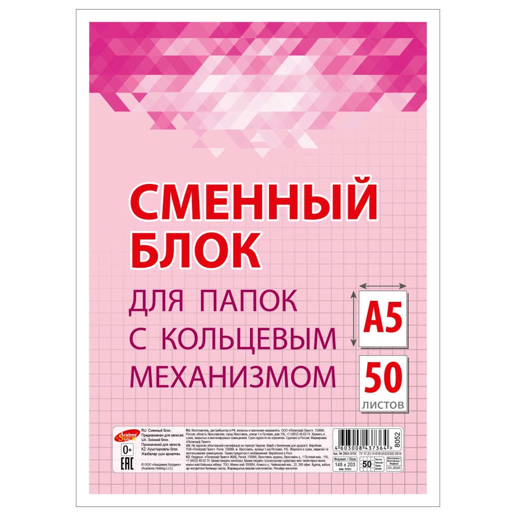 Блок для тетрадей с кольцами А5 50л розовый Академия 8052