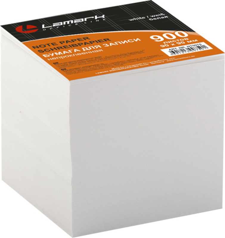 Блок-куб 90*90*90 белый непроклеенный (белизна 96%) Lamark NT0075 (плотность 80гр)