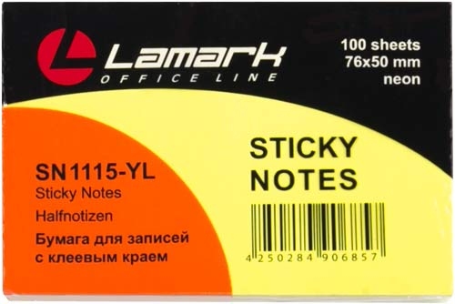 Блок самоклеящ.51*76мм 100л неон желтый Lamark SN1115-YL