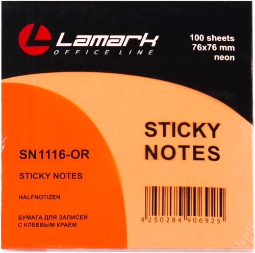 Блок самоклеящ.76*76мм 100л неон оранжевый Lamark SN1116-OR