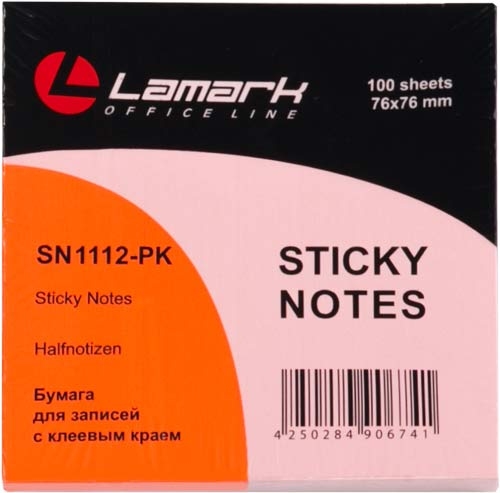 Блок самоклеящ.76*76мм 100л пастель розовый Lamark SN1112-PK