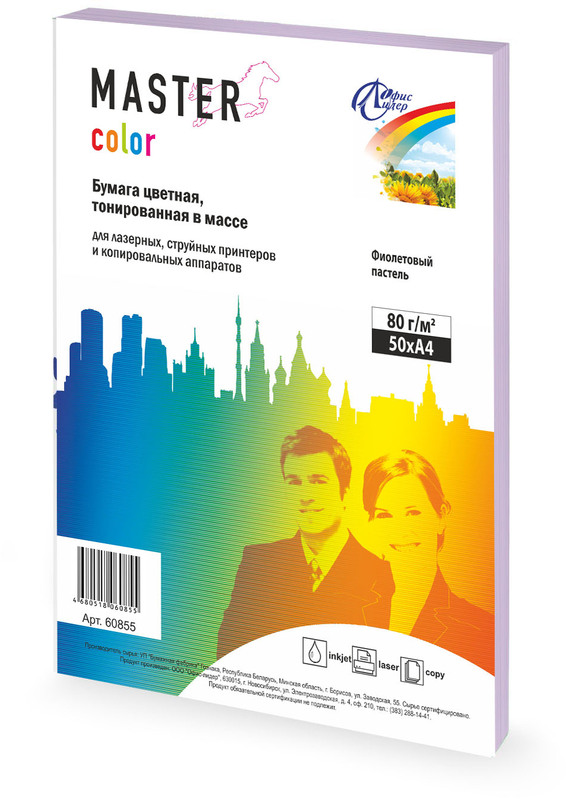 Бумага для принтера А4 цветная 80г/ 50л пастель фиолетовый Master Color 60855 quantity