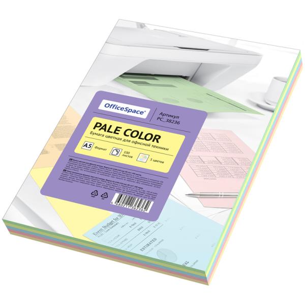 Бумага для принтера А5 цветная 80г/100л 5цветов*20л (пастель) Pale Color Офис-спейс PC_38236