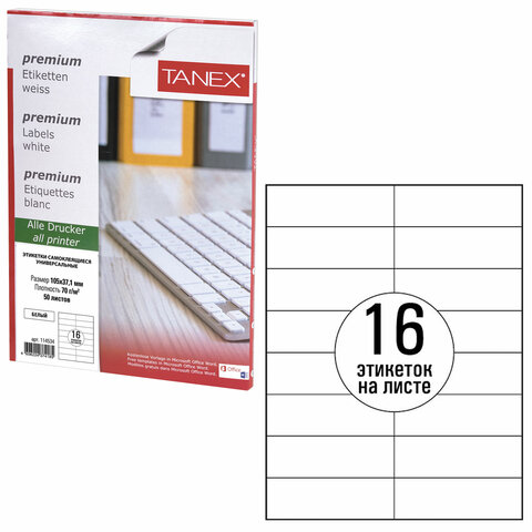 Бумага самокл. А4 50л (16 этикеток 105*37,1мм на листе) белая 70гр Tanex TW-2105 quantity
