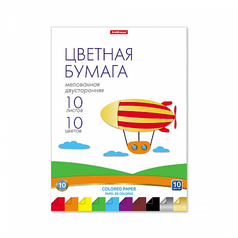 Бумага цветная А4 двусторонняя 10л.10цв. мелованная (80гр) Кораблик ErichKrause 58487 в папке