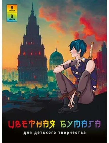 Бумага цветная А4 08л.08цв. мелованная (60гр) Анимэ на закате 30033 скрепка