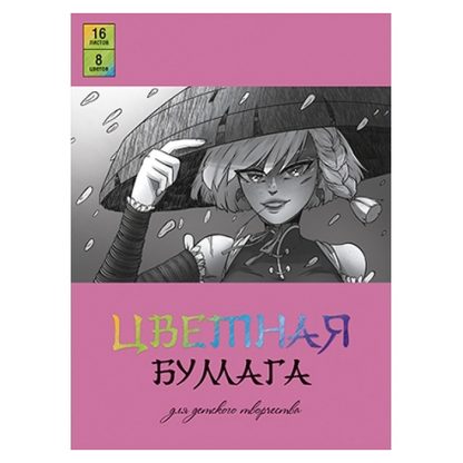Бумага цветная А4 16л.08цв. газетная (50гр) Анимэ в шляпе 130026 скрепка