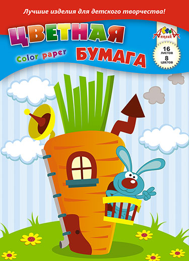 Бумага цветная А4 16л.08цв. немелованная (50гр) Веселый заяц Апплика С0005-48 скрепка