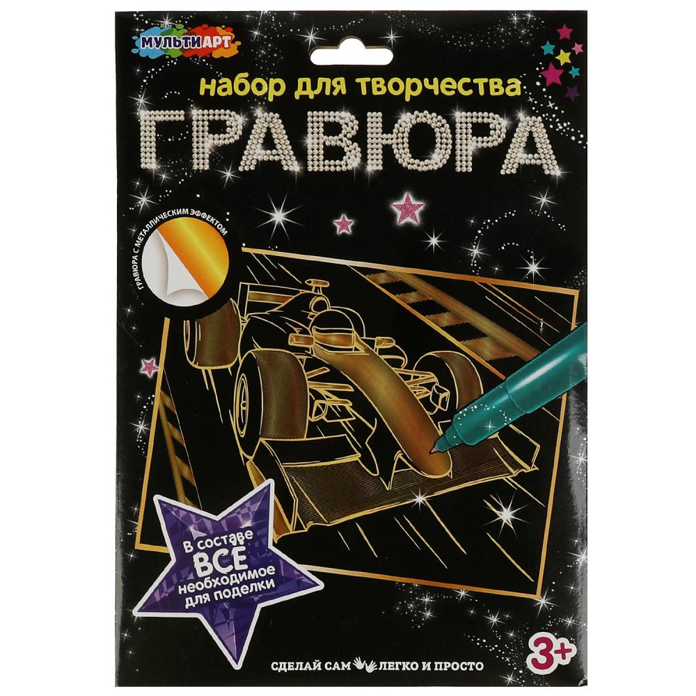 Гравюра А5 эффект золота в конверте Гоночный автомобиль МультиАрт SCRATCHART-GOLD-CAR10