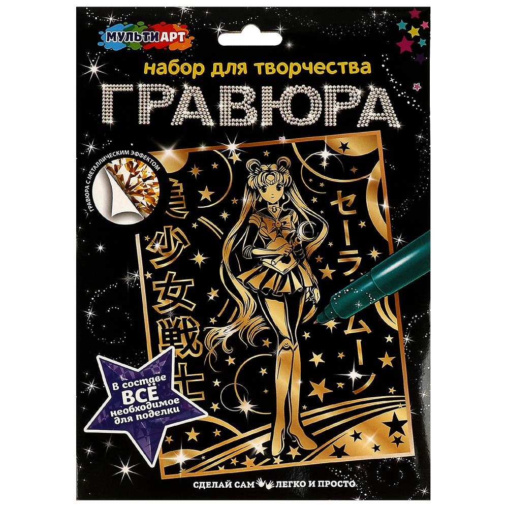 Гравюра А5+ эффект золота в конверте Девочка-волшебница МультиАрт SCRATCHART-MASMOON