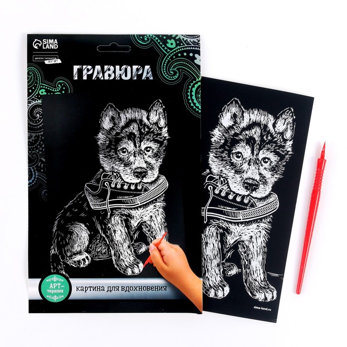 Гравюра А5+ эффект серебра в пакете Щенок с ботинком Школа талантов 2108194/2108201 quantity