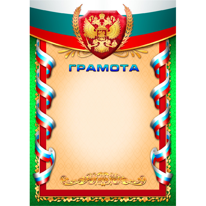 Грамота для принтера А4 Герб, флаг РФ, зеленая рамка КП 703Э