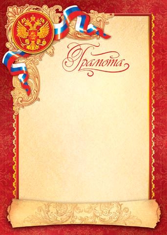 Грамота для принтера А4 Герб, флаг РФ, красная рамка 9-19-045