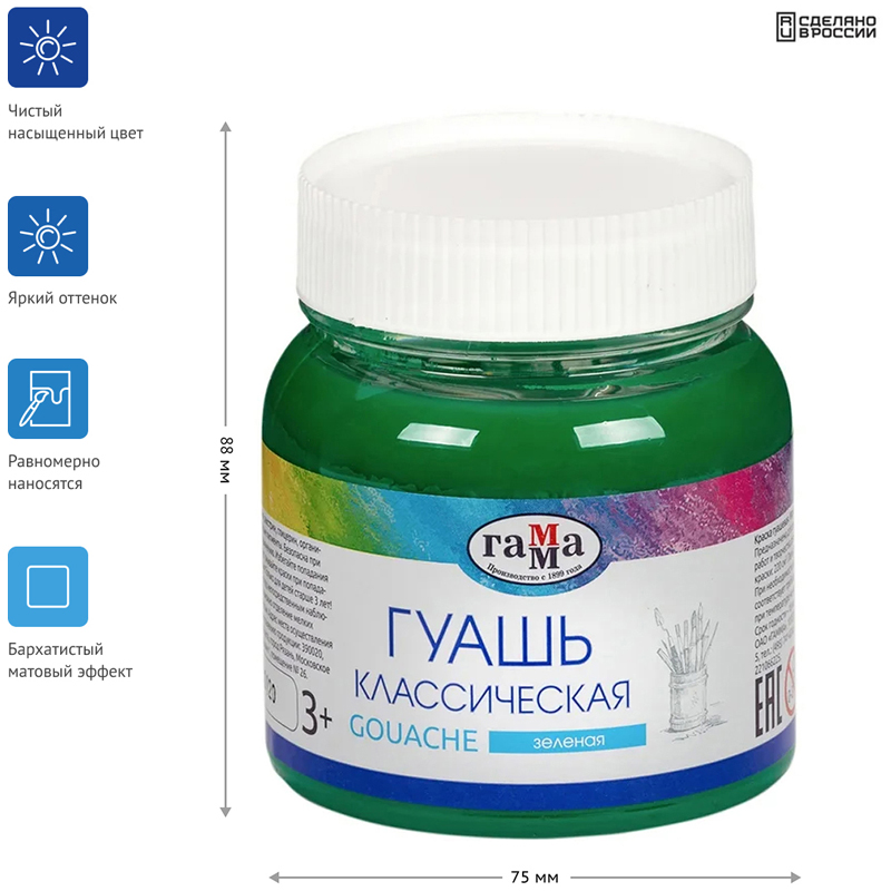 Гуашь 220мл зеленая Гамма 221066225 Классическая