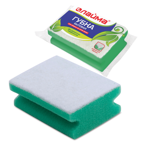 Губка для уборки с чистящим слоем для деликатных поверхностей (122*89*48 мм) профильная Лайма 601556