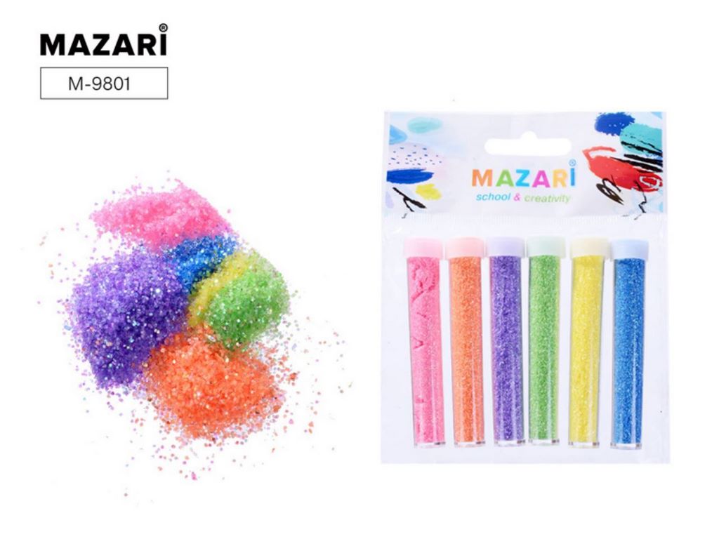 Декор для творчества Блестки (Набор 6 цветов по 4 гр) M-9801 в тубе с крышкой Mazari