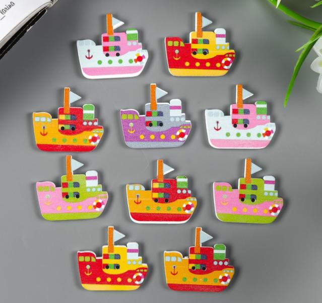 Декор для творчества Пуговицы дерево Пароход (набор 10шт) 3*2,7см 3527783