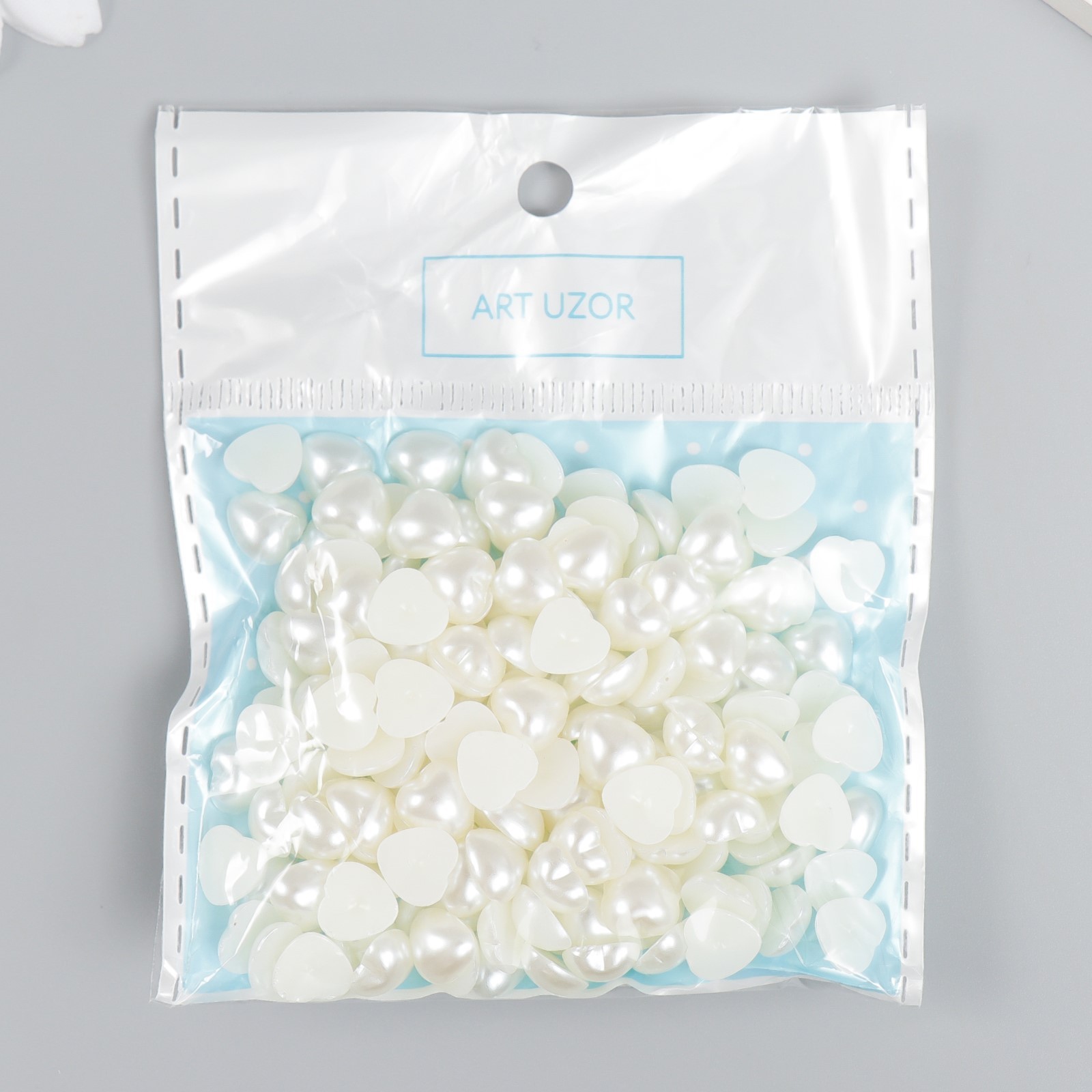Декор для творчества Стразы пластик Сердце цвет жемчужный 8,0 мм (набор 20гр) 9107581 quantity