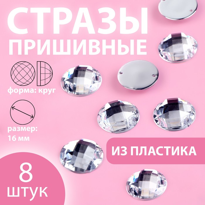 Декор для творчества Стразы пришивные Круглые 16 мм блестящие (набор 8шт) 9868469 quantity