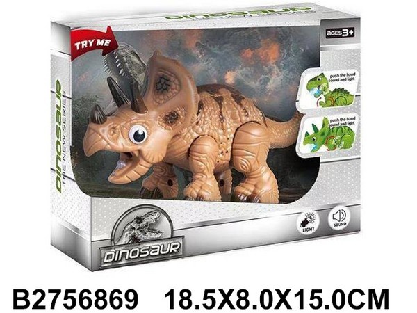 Динозавр 17,5см на батарейках свет+звук, в коробке 18,5*8*15см 2756869