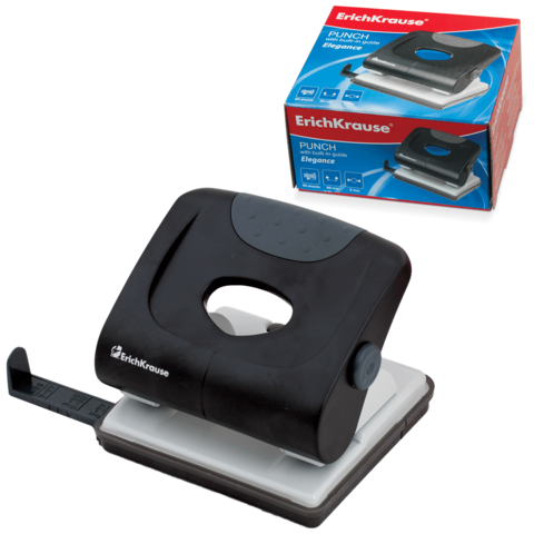 Дырокол 30л ErichKrause Elegance черный металл с линейкой 5402