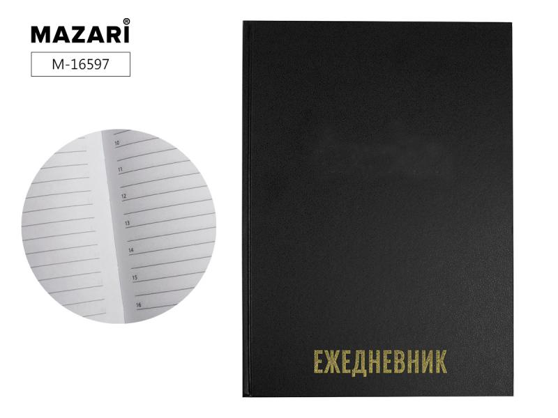 Ежедневник А5 недат. 128л тв/обл бумвинил черный Mazari M-16597