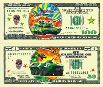 Закладка для книг бумажная Купюры Военная техника $ (1/100шт)