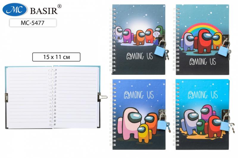 Записная книжка на замочке А6 тв.обл. Астронавты M-5477 спираль, в клетку, 48л, 15*12 см