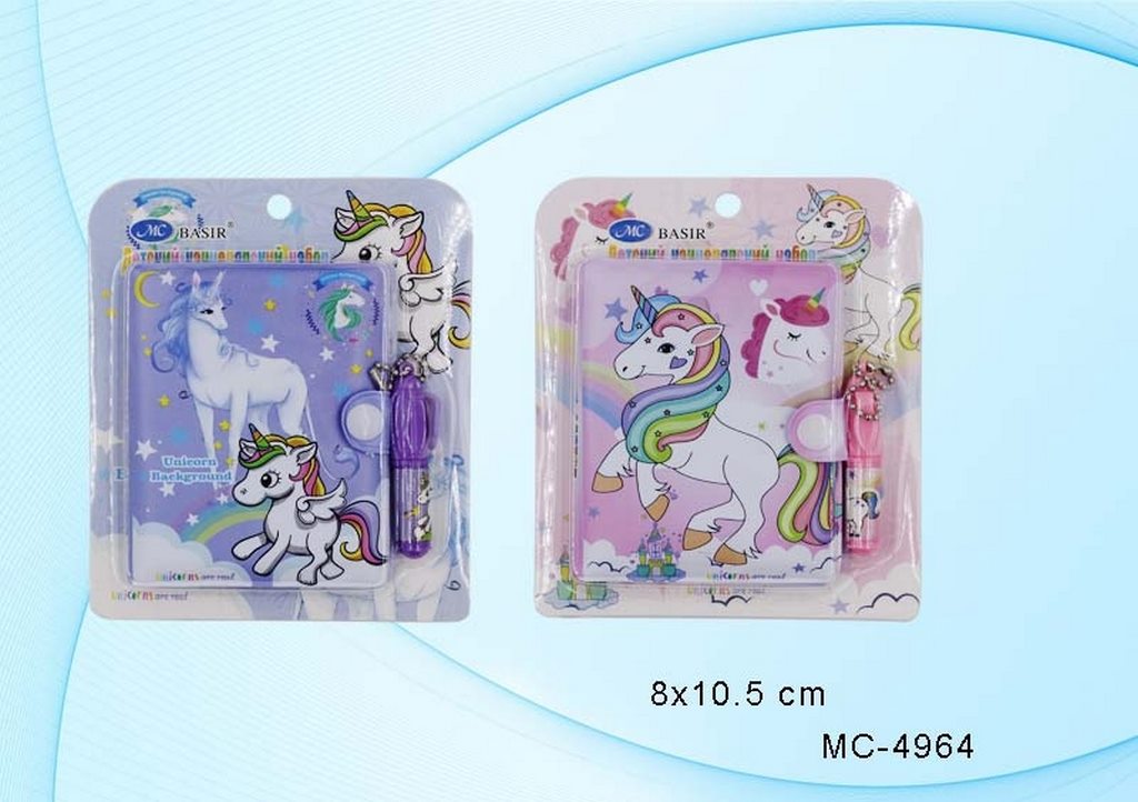 Записная книжка с ручкой А7 тв.обл. Единорог МС-4964 на кнопке, линия, 40л, блистер 11*8 см, ПВХ-обл