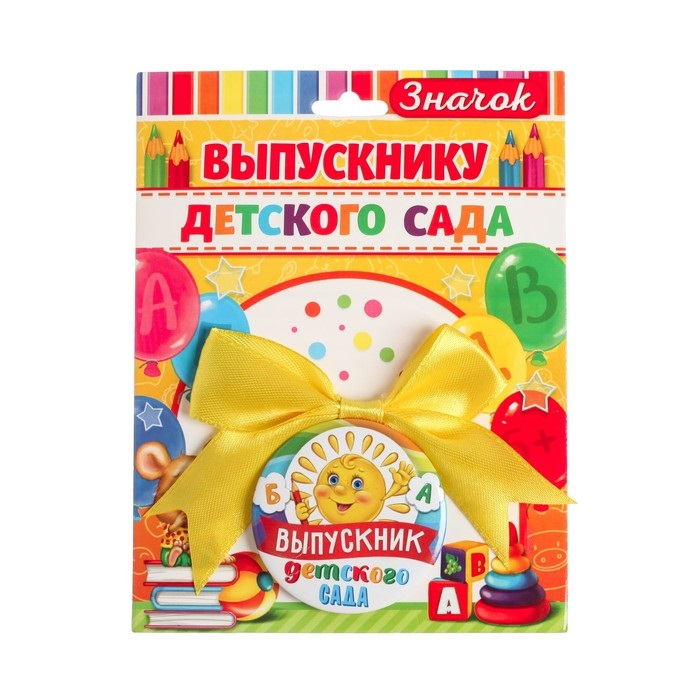 Значок с бантом Выпускник детского сада (солнце) 45мм пластик 4537171