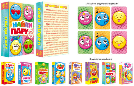 Игра карточная Найди пару. Смайлики (36 карточек) (8 видов) 29065
