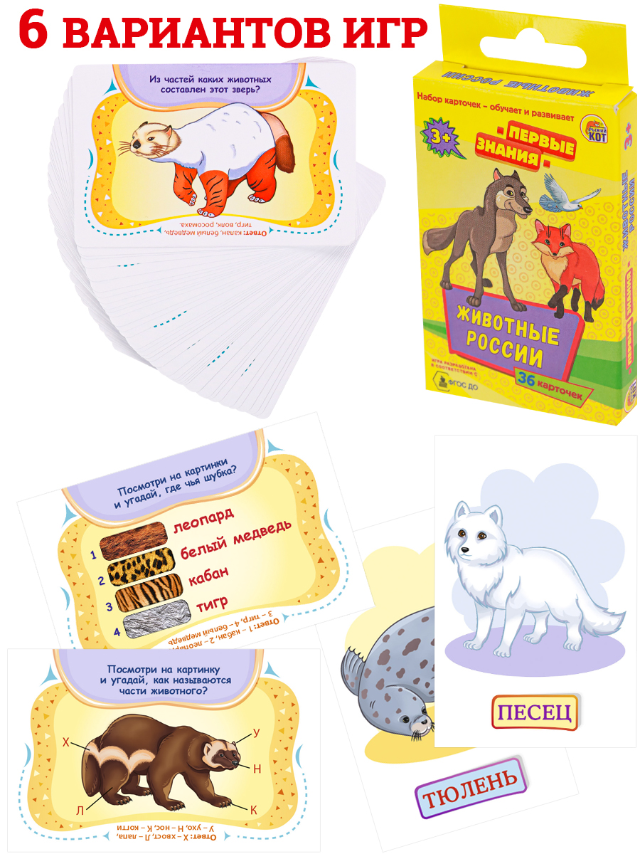 Игра карточная Первые знания. Животные России (36 карточек) 3+ Рыжий кот ИН-2085 quantity