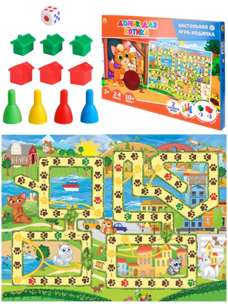 Игра настольная бродилка Домик для котика (с домиками), в коробке РК ИНЗ-3082
