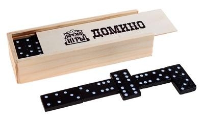 Игра настольная Домино классика черное в деревянном пенале Время игры 565681 quantity