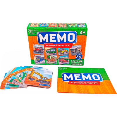 Игра настольная Мемо Наземный транспорт (50 карточек) в коробке 8676