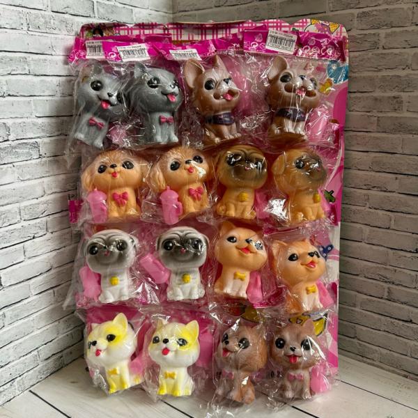 Игрушка пищалка резина Собака 6см с бутылочкой ассорти 2011