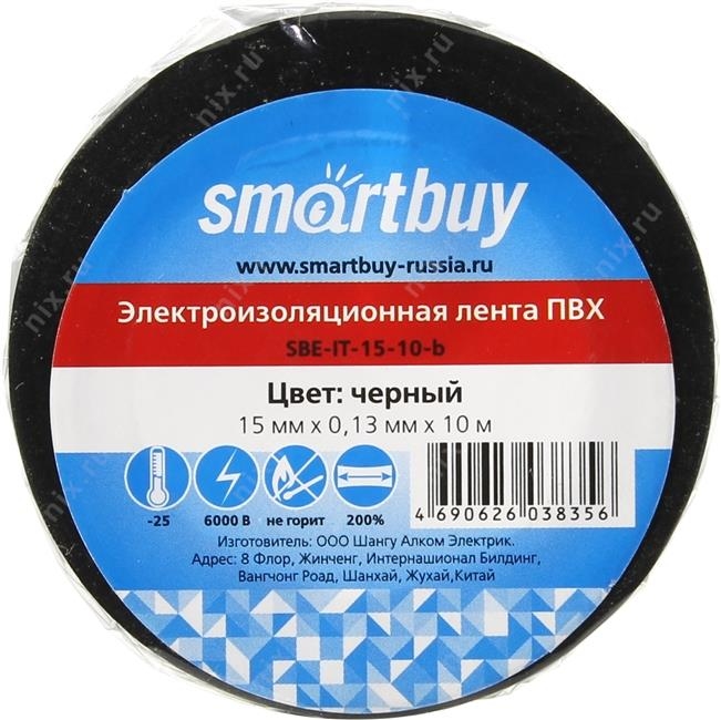 Изолента ПВХ 15мм*10м черная 130мкм Smurtbuy SBE-IT-15-10-b