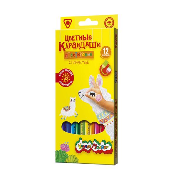 Карандаши цветные пластиковые с ластиком 12цв. Каляка-Маляка (стираемые) ККМП12 трехгранные, мягкие