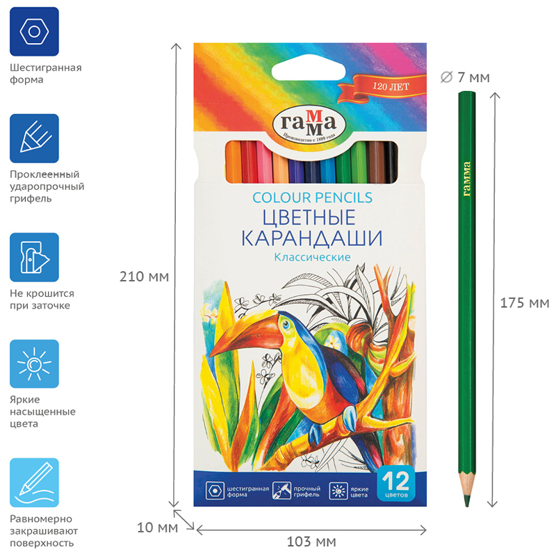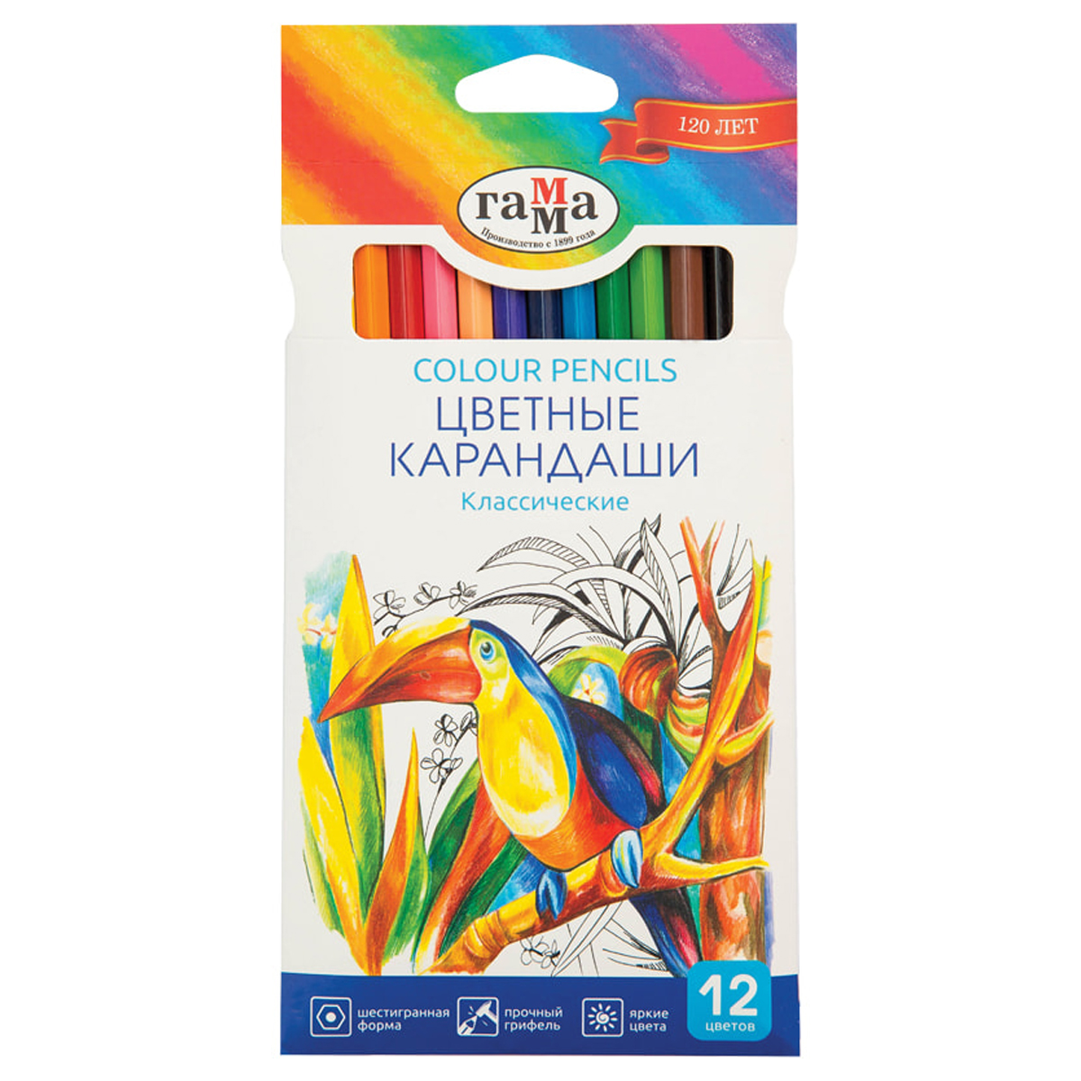Карандаши цветные 12цв. Гамма Классические 050918_02 шестигранные, дерево