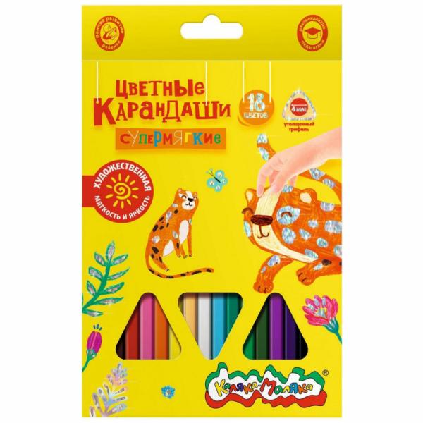 Карандаши цветные 18цв. Каляка-Маляка КТКМ18 трехгранные, мягкий грифель 4,0 мм, дерево